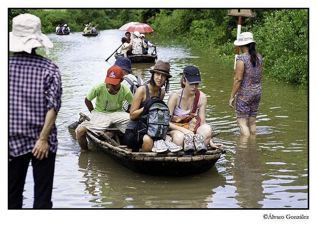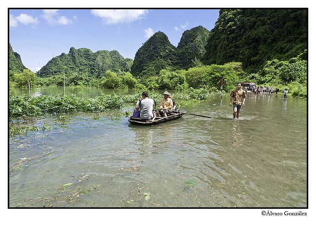 Atravesando inundaciones en CatBa, Halong, VietnamDesde el muelle hasta la zona más boscosa hay unos 20 kilómetros. La lluvia, constante en esta parte del mundo, inundó un buen trayecto de la carretera que dificultó nuestra movilidad por la isla. El autobús no pudo continuar y tuvimos que seguir en barca. Luego, otro bus nos recogió en la parte seca y nos llevó marcha atrás (porque no había espacio para dar la vuelta) durante 10 kilómetros.