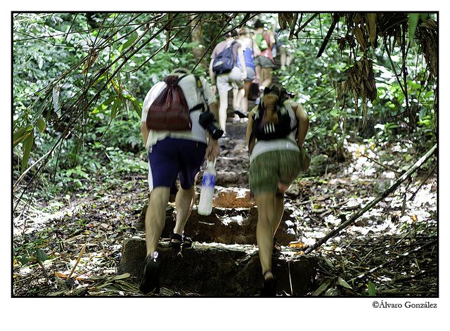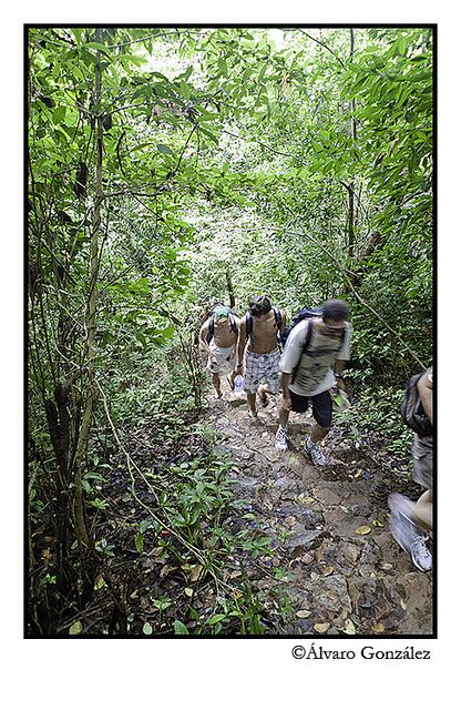 Nadie tiene mucha idea de lo que está contratando, cruzas los dedos y esperas que sea la decisión adecuada, tampoco te informan de mucho y una vez en la isla nos dicen que el Hiking (que yo pensaba que era como treking osea pasear por la montaña) que era muy duro que necesitábamos calzado especial (y yo con mis chanclas metidas por el dedo) y que si no nos veíamos preparados que esperáramos en el autobús durante al menos 2h que dura la excursión. Por supuesto yo no iba a quedarme en el autobús después de haber llegado hasta allí, afirmación de la que me arrepentí al cabo de un rato cuando te ves con todos los pies y piernas llenas de barro, resbalándote por la falda de la montaña y subiendo escaleras imposibles de hace bastantes años.