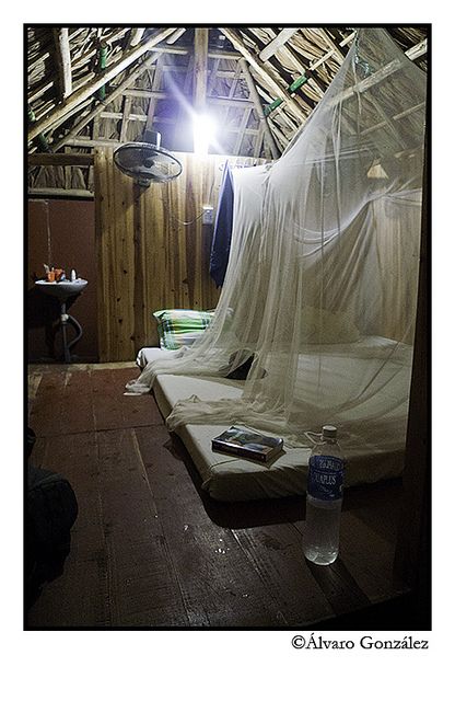 Tras un cálido recibimiento tomamos posesión de los bungalows. Construidos en madera el techo se componía de restos de palmeras secas y la cama era un simple colchón en el suelo.