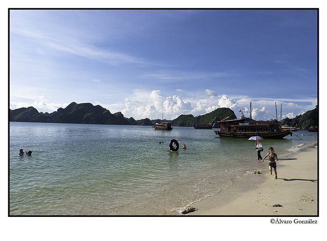 Vistas desde lo alto de la isla de CatBa, Halong, VietnamUna vez abajo, la comida normalmente se hace en de los hoteles de la ciudad. Después, se emprende camino a la playa de Monkey Island. No vimos ningún mono, sólo queríamos darnos un baño. La Monkey Island es un acantilado rocoso que cuenta con la mejor playa de la zona. Arena fina y agua templada para aliviar la tensión del hiking.
