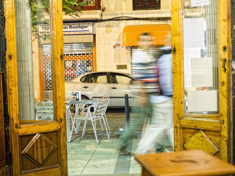 Al contrario de los “buenos fotógrafos”, no recomiendo llevar trípode. Ir cargado con él y tomar cervezas suele ser incompatible, al menos para mí. Yo en mis imágenes no busco la nitidez absoluta sino las sensaciones. Si quiero una foto con nitidez y sin trepidaciones intento buscarme un lugar donde apoyar la cámara para que no tiemble o agarrarla fuerte mientras junto los codos contra el cuerpo y aguanto la respiración. Ni que decir tiene que tampoco pienso en el ISO y el grano que pudiera producir a altas cotas. Creo que la noche nunca es clara, siempre es oscura, sucia, llena de impurezas, de recuerdos borrados, de nostalgias impagables. Y, en ese sentido busco una fotografía que intente mostrarla tal como yo la siento, que sea un reflejo de mi percepción nocturna.